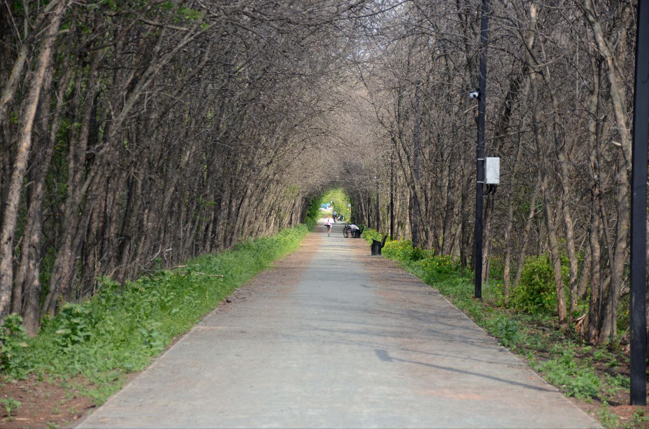 Благоустройство парка ведется с 2021 года. На территории зеленого массива обустроили пешеходные дорожки, прогулочные, детские и игровые зоны, спортивные площадки с тренажерами, подключили освещение.