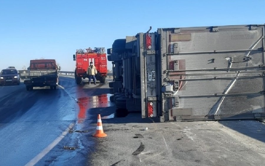 Водитель грузового автомобиля не справился с управлением и допустил опрокидывание транспортного средства на правый борт. Как сообщили в региональном ГУ МЧС, обошлось без пострадавших.