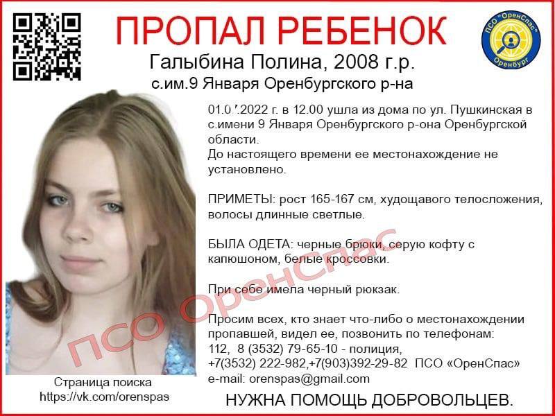 1 июля в 12 часов дня ушла из дома по улице Пушкинской в посёлке имени 9 Января и до сих пор не вернулась 14-летняя Полина Галыбина.
