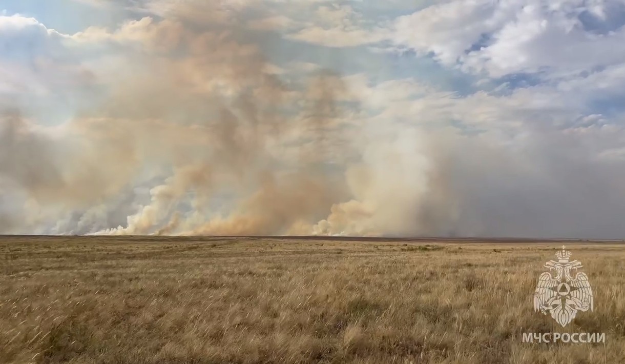 В Оренбургской области зафиксировано масштабное возгорание сухой травы в трёх муниципальных образованиях — вблизи населённых пунктов Акжарское (Ясненский округ), Ащебутак (Домбаровский район) и Лужки (Новоорский район).