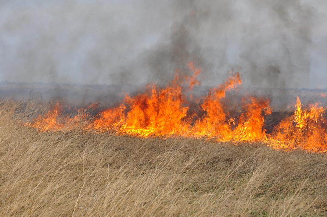 10 гектаров сухой травы горело в районе села Белозёрка Октябрьского района.