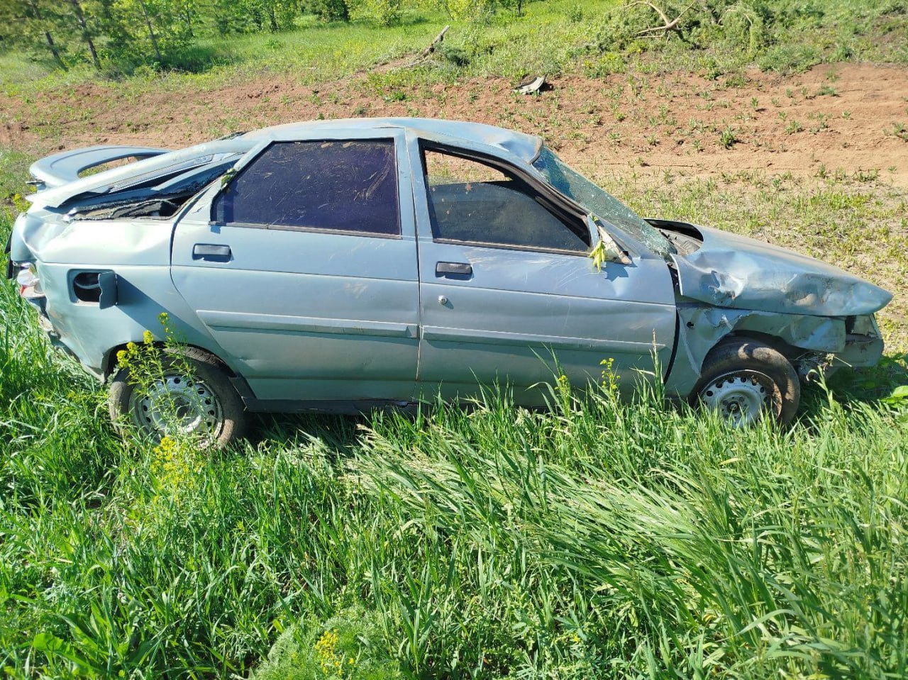 Машина опрокинулась в кювет. В результате ДТП водитель госпитализирован с множественными переломами рёбер, перелом костей таза и ушибами.