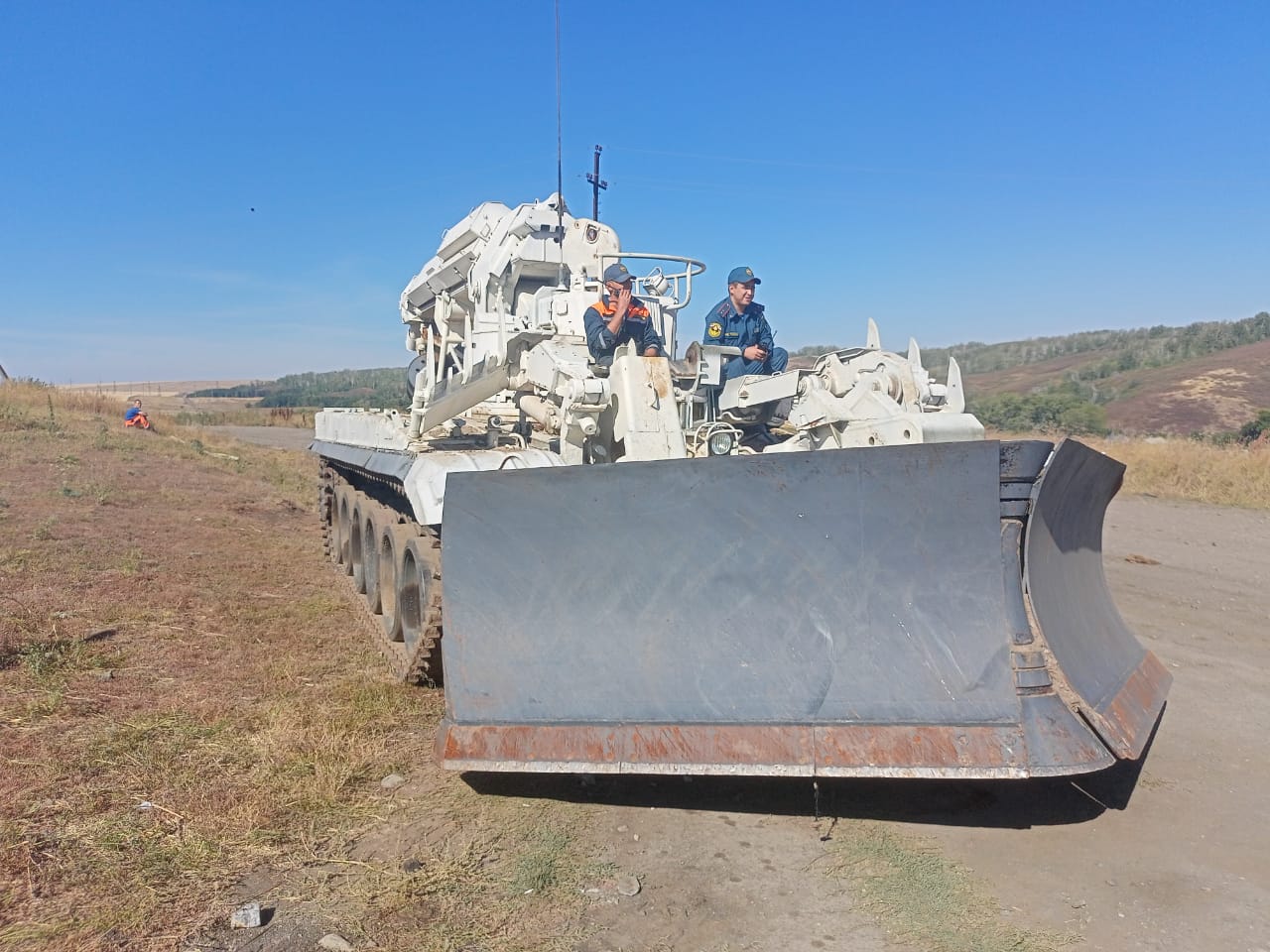 Для опашки задействована тяжелая техника — инженерная машина разграждения (на фото). К месту ЧС прибыли аэромобильные группировки республики Башкортостан, Самарской и Ульяновской областей в составе 86 человек и 19 единиц техники.