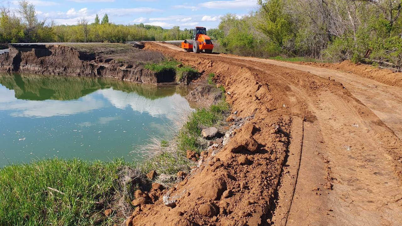 На месте автомобильной дороги Беляевка-Жёлтое в Оренбуржье обустроили временную дорогу.
