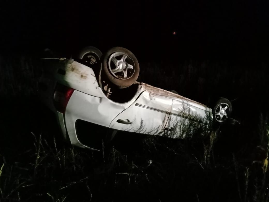 У села Артемьевка местный житель ночью обнаружил перевернутый автомобиль «Лада Калина».