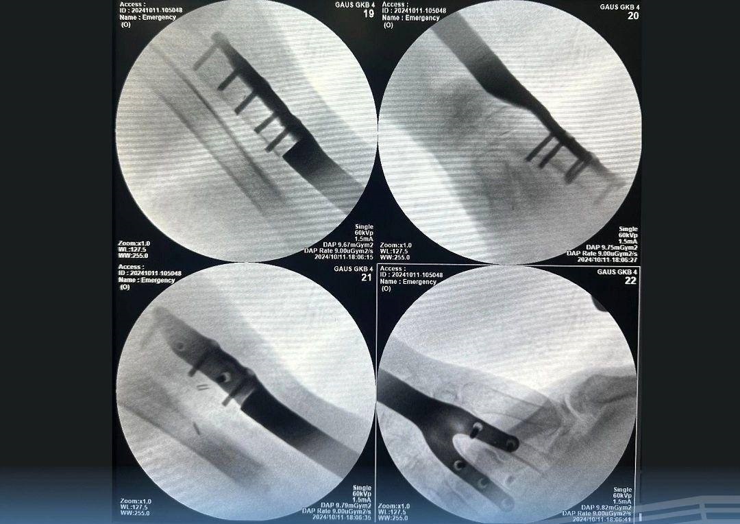 После компьютерной томографии здоровой и травмированной конечности был разработан и установлен индивидуальный имплант лучевой кости левого предплечья. Он прижился, рана благополучно зажила.