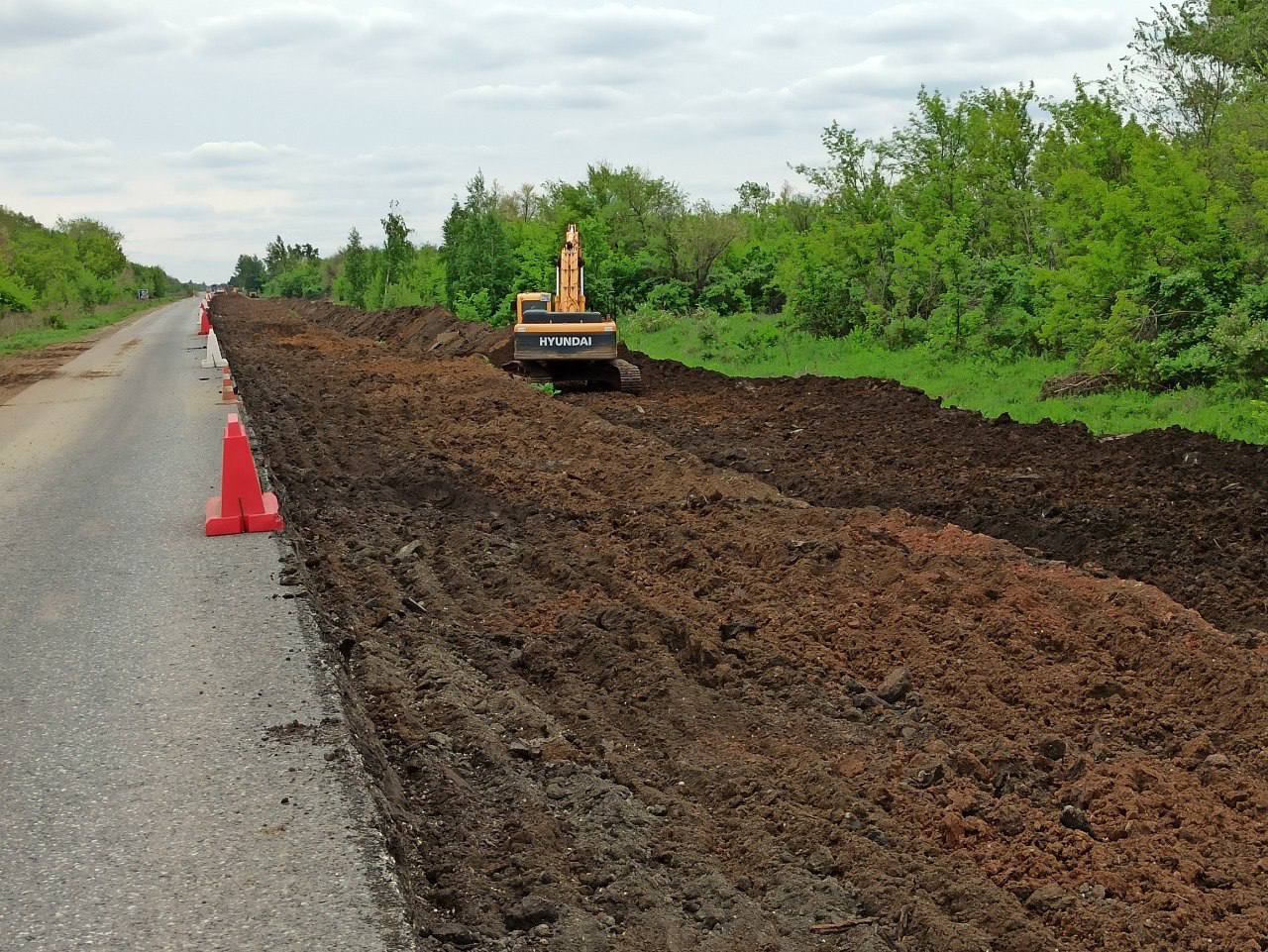 Отдельно стоит отметить масштабные восстановительные работы на участке дороги Беляевка–Жёлтое, проходящем вдоль берегов реки Урал. Здесь производится полный комплекс мероприятий по восстановлению покрытия, разрушенного наводнением весной 2024 года. Полностью заменяется вся конструкция дороги, начиная с нижнего слоя, обеспечивая устойчивый срок службы покрытия. Дорожники организовали пропуск автомобилей по временной схеме, используя половину дороги и регулировку движения светофорами.