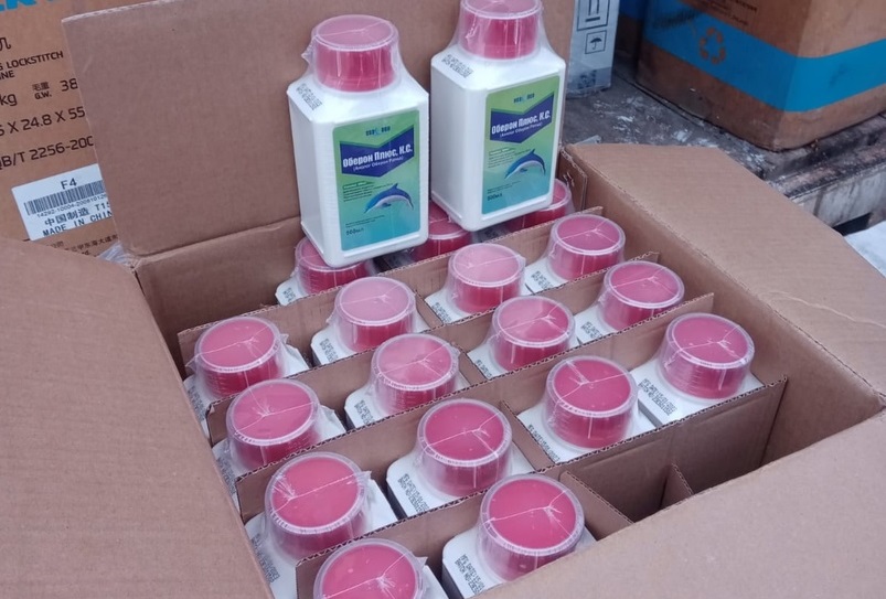 В грузовике перевозили 116 коробок с инсектицидами «Моспен» (1,16 тонны) и «Оберон Плюс» (970 литров). Производителем химикатов является КНР.