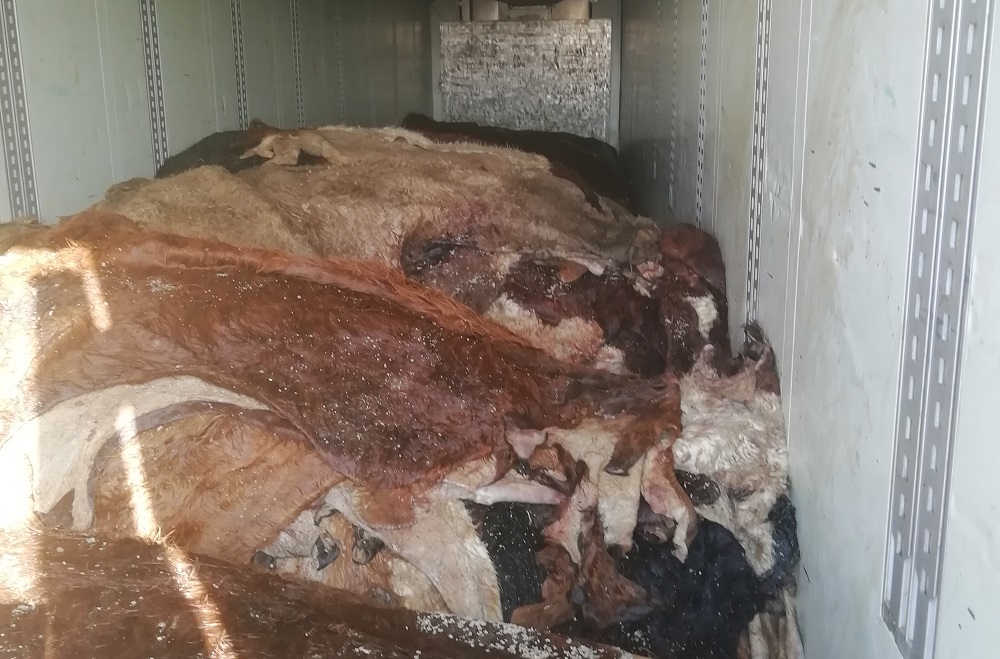 Также пресечена попытка ввоза 20 тонн шкур крупного рогатого скота по причине отсутствия на перевозимых шкурах маркировки, подтверждающей их происхождение.