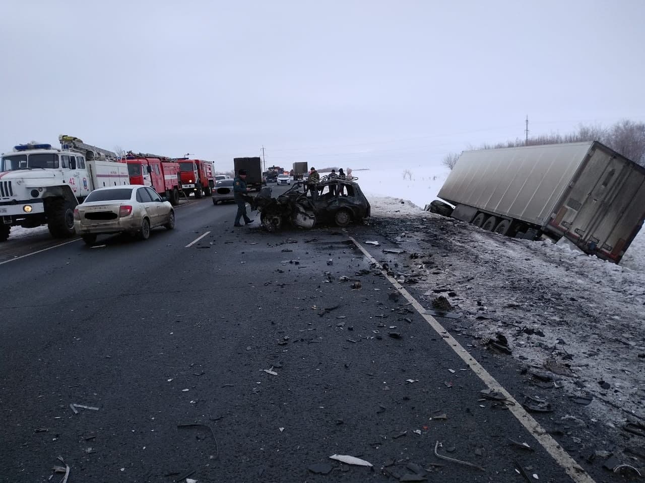 Дорожно-транспортное происшествие с участием «Нивы 2131000» и большегруза Mercedes случилось на 221-м километре трассы «Оренбург — Самара» в пяти километрах от села Тоцкое.