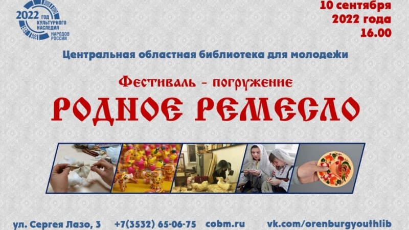 10 сентября в Центральной областной библиотеке для молодёжи (Оренбург, улица Сергея Лазо, 3) пройдёт фестиваль, посвященный местным народным промыслам.