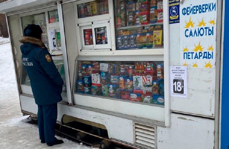 Сотрудники пожарного надзора регионального управления МЧС проводят проверки торговых точек по продаже пиротехники.