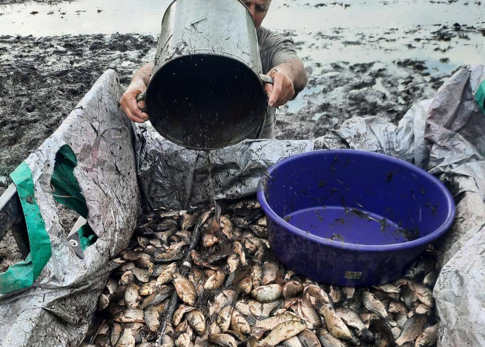 Рыб собирают из обмелевшего водоёма в ведра с водой и перевозят в благоприятные места. Такие мероприятия проводятся по всей области, где есть необходимость.
