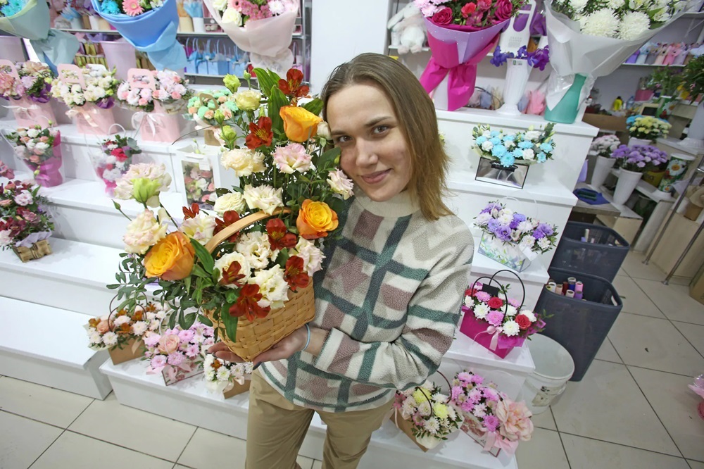 – Сейчас реже покупают букеты или одиночные цветы, гораздо чаще композиции в корзинках и коробках, – рассказывает Елена Градовская, хозяйка цветочной «точки».