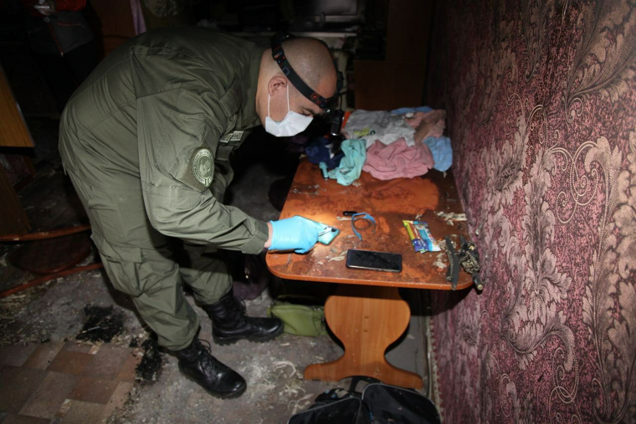 После всего совершенного он поджег легко воспламеняемые предметы интерьера. В это время чего одна из потерпевших, несмотря на ранение, выбежала из квартиры через подъезд на улицу, где обвиняемый ее догнал и нанес ещё удары ножом.