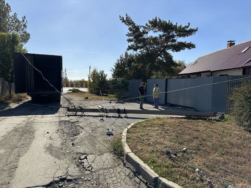 Причиной инцидента стал грузовик, зацепивший провод. Водитель этого не заметил и продолжил движение. В итоге на землю рухнули две опоры, одна из которых повредила забор жилого дома.