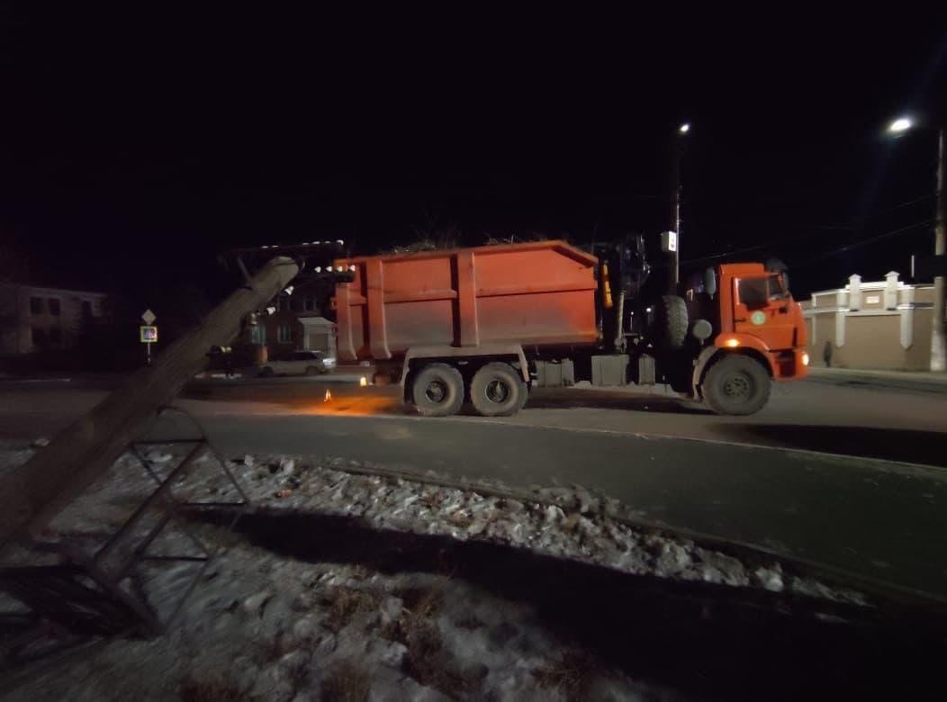 В районе дома №62 по улице Советской водитель автомобиля «КамАЗ» во время движения зацепил провода. В результате упала опора линии электропередач.