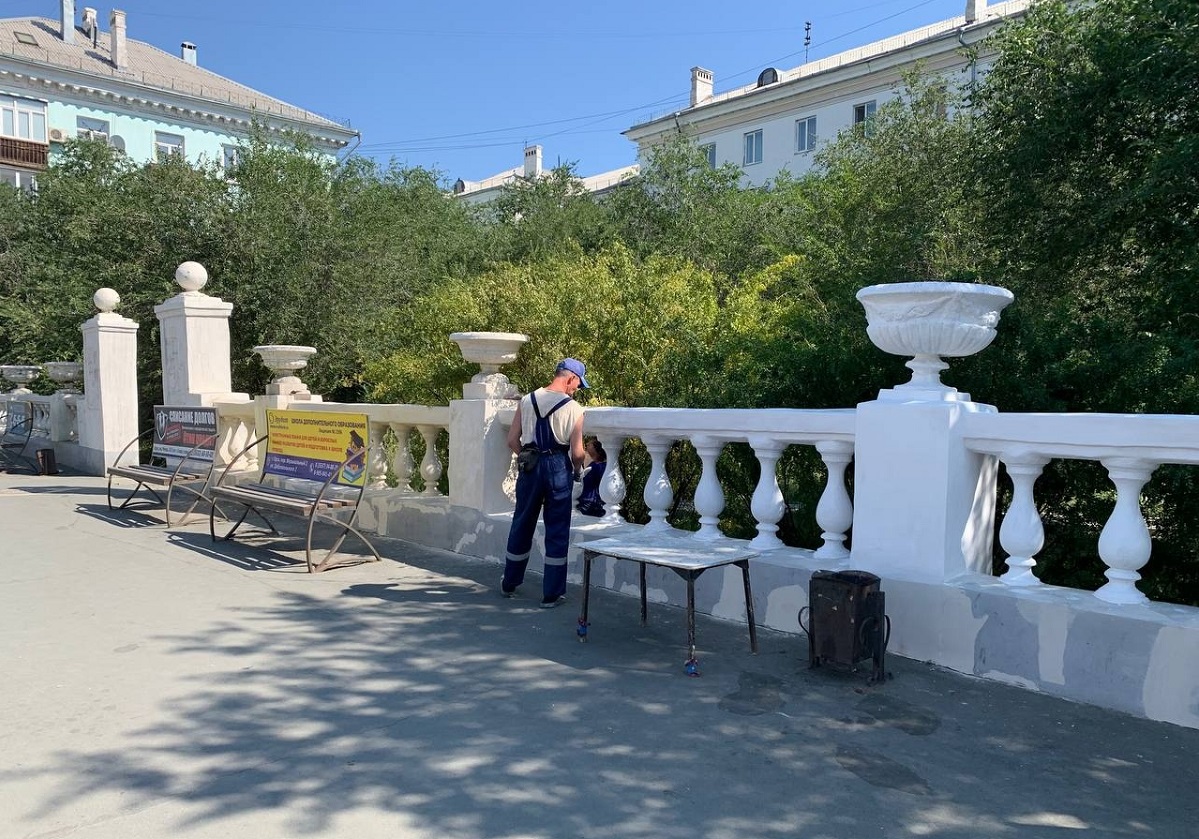 В Орске начали ремонтировать балюстраду на остановке общественного транспорта «ДК Нефтехимиков». Работы завершат к Дню города.