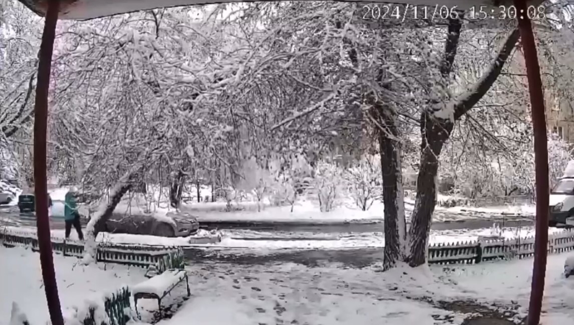 Инцидент, произошедший около дома №15 на улице Красной в Орске, запечатлела камера домофона.