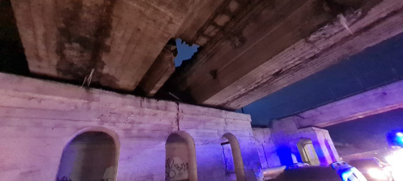 По словам очевидцев, под мостом на проезжей части виден обломок упавшей сверху плиты.