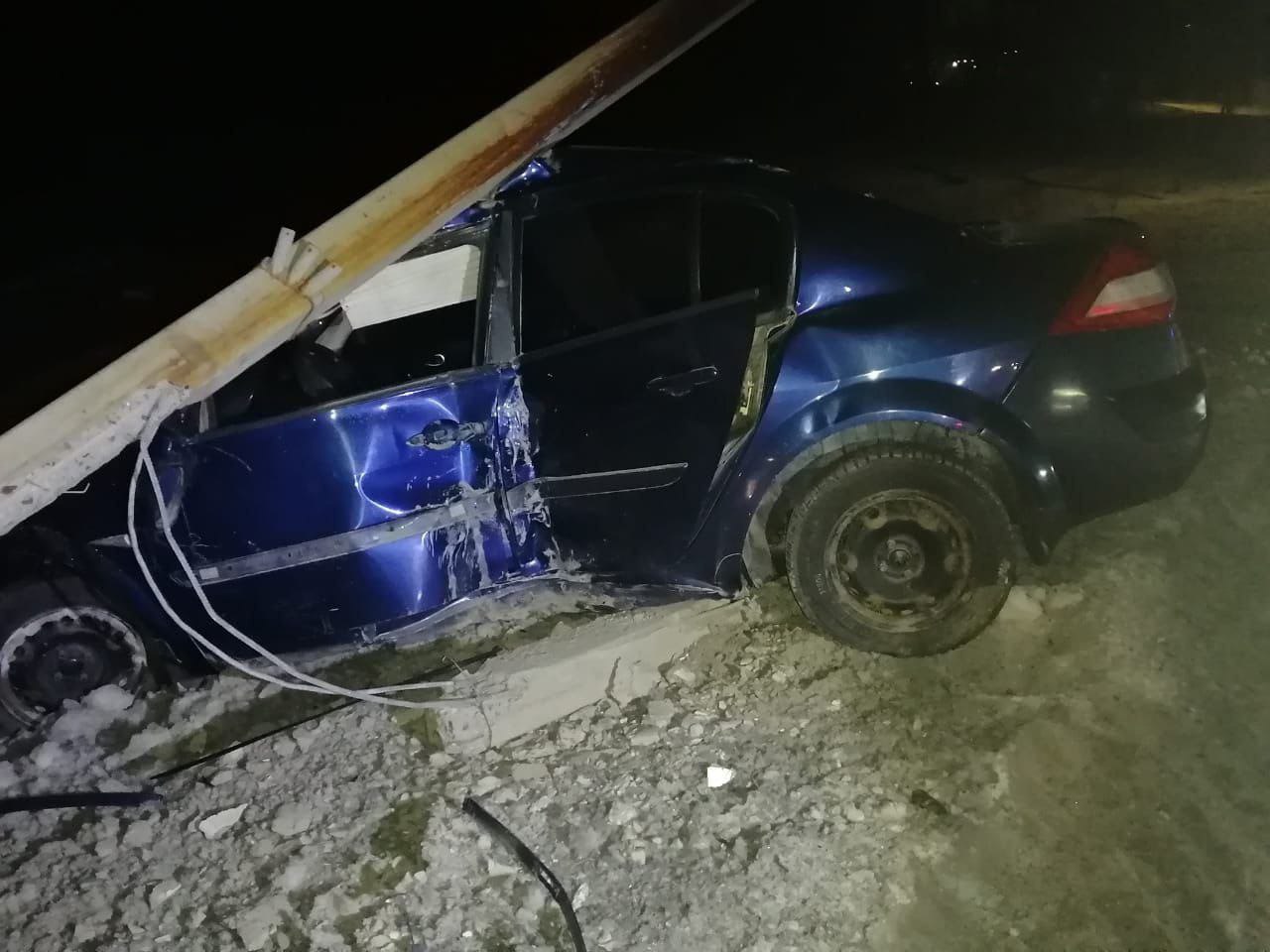 41-летний водитель автомобиля Renault Megane не справился с управлением, допустил съезд в кювет и врезался в бетонный столб.