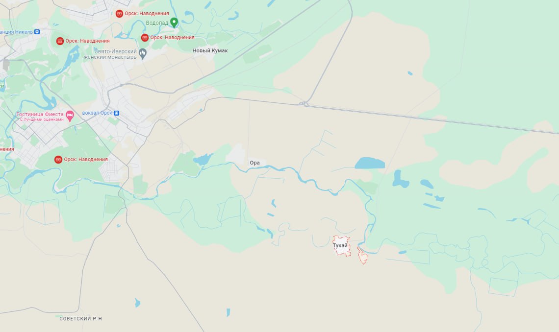 Администрация Орска сообщает, что вода может прийти в Орск по руслу реки Мендыбай. Есть угроза подтопления посёлка Тукай. Объявлена эвакуация.