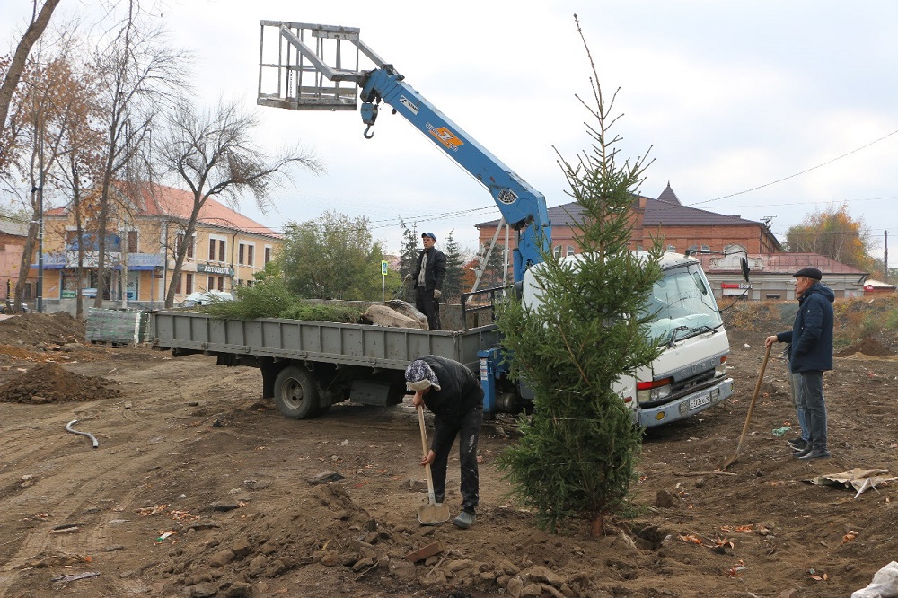 В Орске начали озеленять сад Шевченко. Планируется высадить более 350 деревьев: берёзы, сосны, ели, дубы, ясени, липы, пирамидальные тополя, яблони, кусты боярышника и татарские клены.