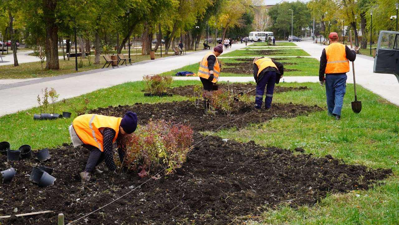 В парке имени Ленина (он же — парк Железнодорожников) вдоль центральных пешеходных дорожек и на территории у амфитеатра высадили 470 кустов спиреи японской сорта «Голдфлейм».