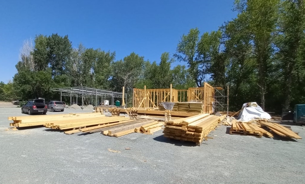 Со стороны нижней объездной дороги возводят два кафе. Уже смонтирован каркас помещений, идёт обшивка стройматериалами.