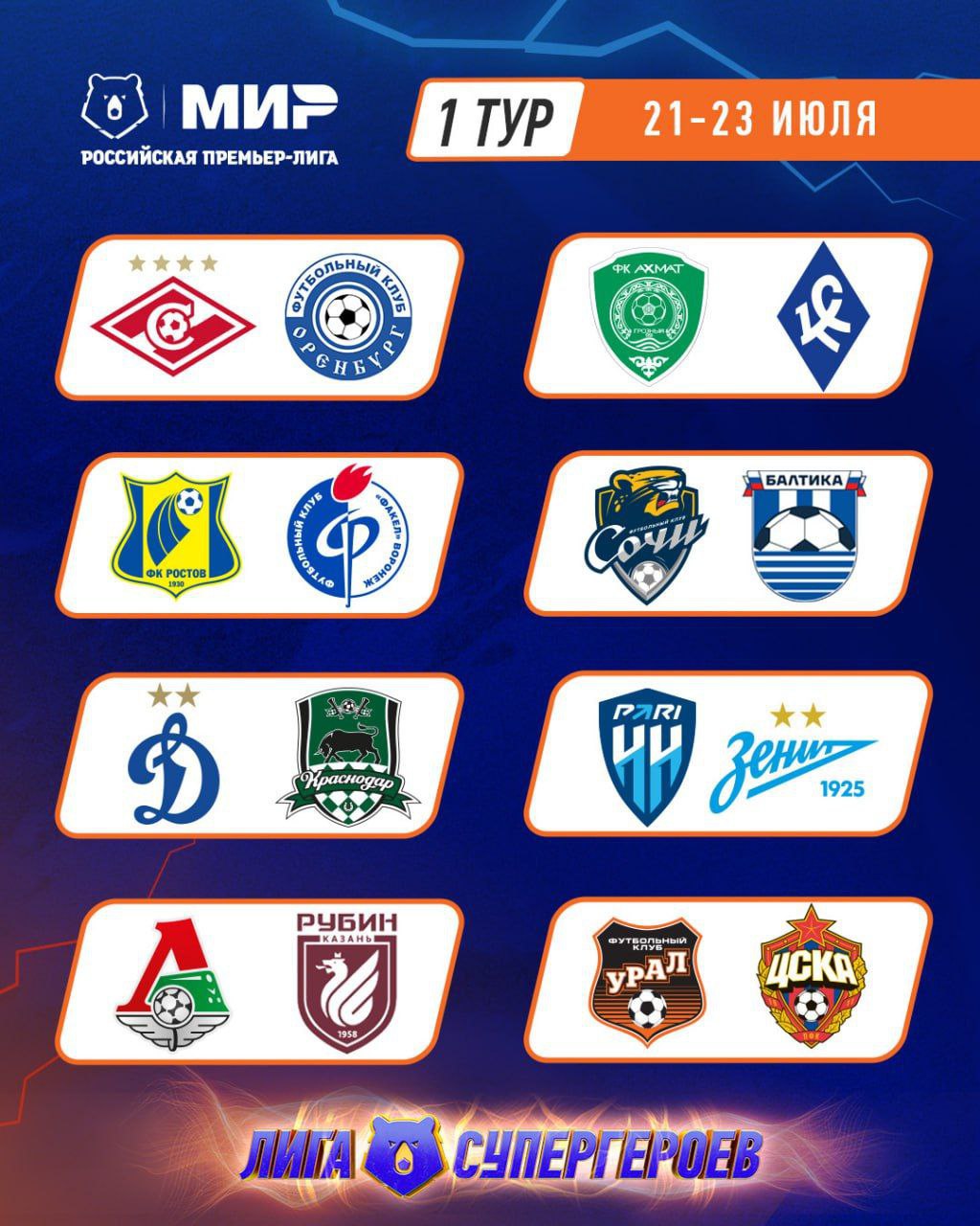 Первый тур чемпионата пройдёт с 21 по 23 июля. ФК «Оренбург» сразится в Москве со «Спартаком». Затем сыграет в Казани с «Рубином».