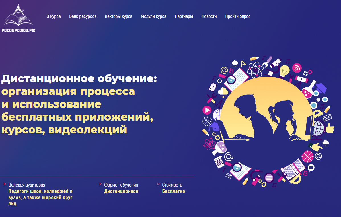 Онлайн-курс по организации процесса дистанционного обучения с помощью бесплатных приложений, курсов, видеолекций появился на площадке учись-дома.онлайн, созданной по инициативе министерства просвещения РФ для поддержки педагогов.