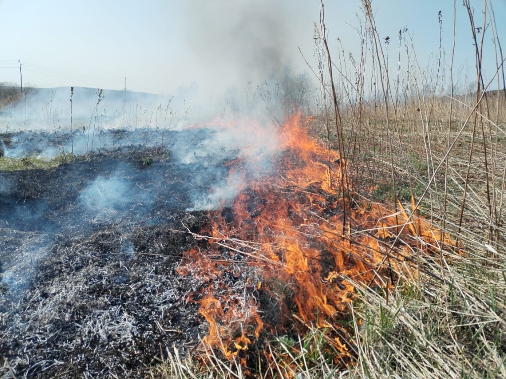 14 мая загорелась сухая трава в районе заброшенного детского лагеря «Ромашка».