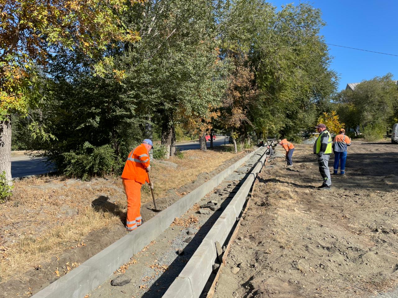 В саду Орской ТЭЦ обустраивают тротуар. Пешеходную зону делают по просьбам жителей города.