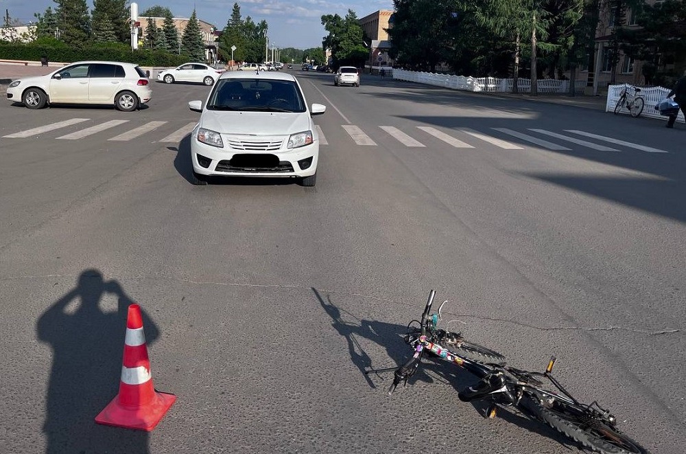 Ребёнок переезжал проезжую часть на велосипеде по пешеходному переходу.