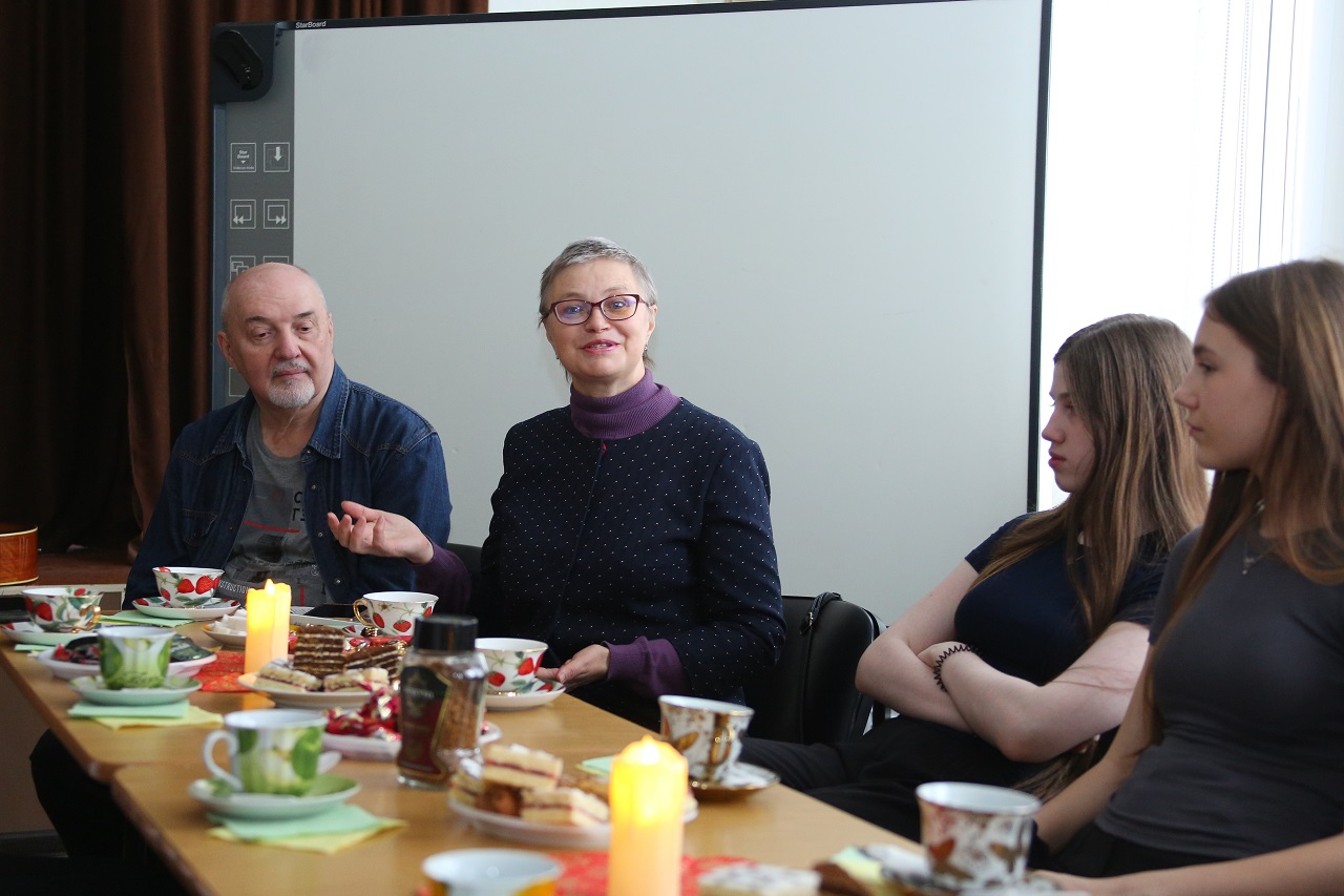 На первую встречу в творческой гостиной коллектив школы пригласил оренбургского поэта-песенника Вячеслава Голубева и журналистов областной газеты «Оренбуржье». За чаепитием гости рассказали подросткам о секретах профессионального мастерства, поделились своими литературными пристрастиями. Учащиеся 7-10 классов 40-й школы Оренбурга прочитали стихи классиков и современных поэтов.