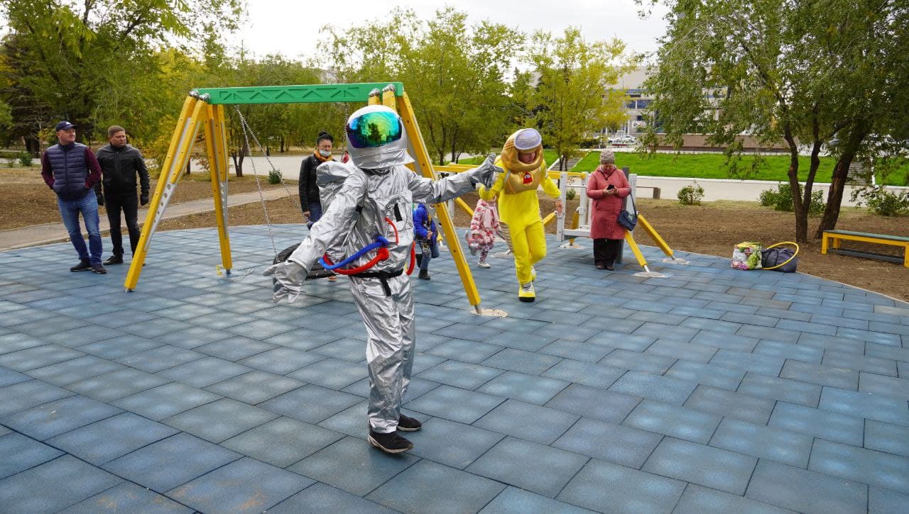 Игровой комплекс общей площадью 500 квадратных метров разместился в сквере имени Гагарина за памятником первому космонавту Земли. Место для игр и отдыха маленьких оренбуржцев оформлено в тематике космоса.