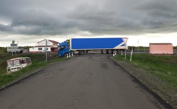 Водитель большегруза IVECO с полуприцепом, двигаясь со стороны города Оренбурга в сторону Соль-Илецка, выполнил обгон пассажирского автобуса «ПАЗ», осуществлял поворот налево и допустил с ним столкновение.