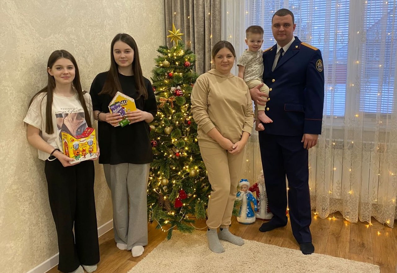 Заместитель руководителя следственного отдела Денис Жималов совместно с офицерами отдела накануне Новогодней ночи поздравили многодетную семью с наступающим праздником, пожелали крепкого здоровья, мира, благополучия и добра, после чего вручили детям сладкие новогодние наборы.