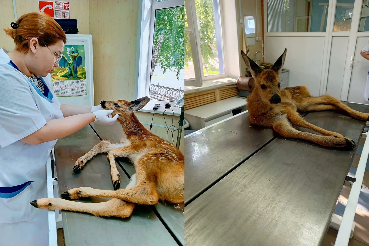 Люди отвезли косулю к ветеринару. По мнению специалистов, её возраст — не более 6 месяцев.