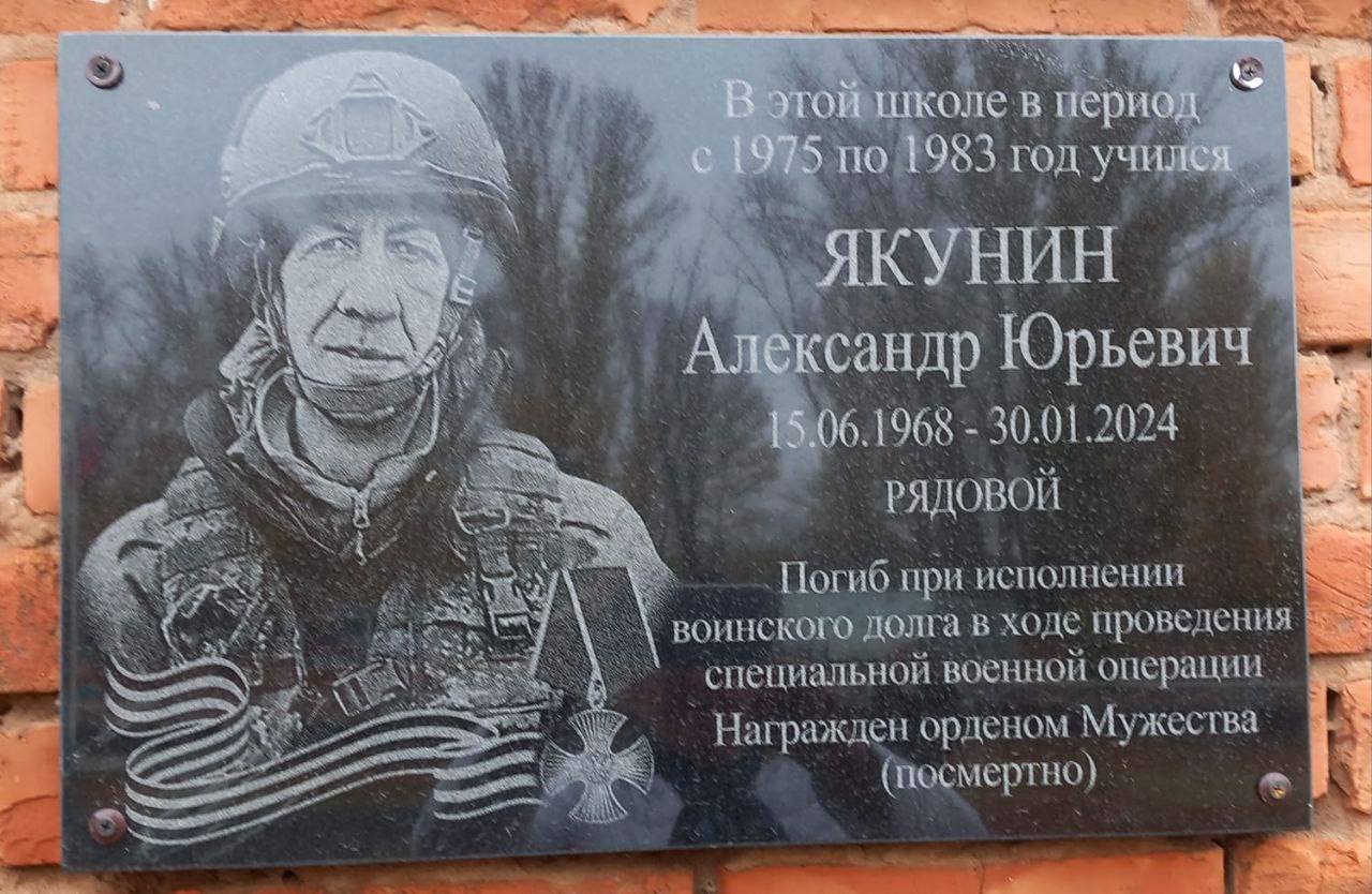 В Федоровской школе торжественно открыли мемориальную доску в память о выпускнике — участнике специальной военной операции Александре Якунине.