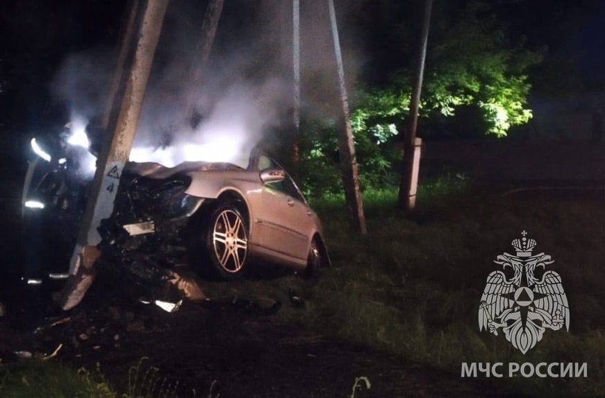 В Тоцком районе легковой автомобиль врезался в железобетонную опору и загорелся.
