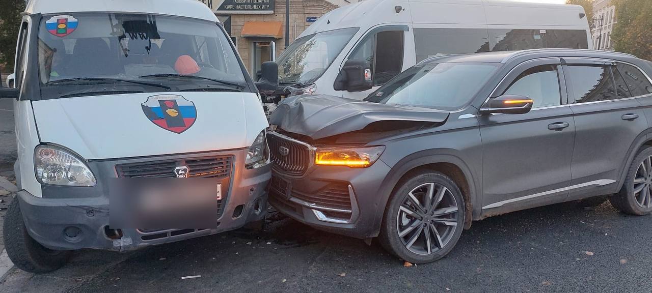 Водитель автомобиля Geely двигался по улице 9 января со стороны улицы Володарского в сторону улицы Пушкинской и не уступил дорогу. Произошло столкновение с микроавтобусом, который двигался по улице Кирова в сторону улицы Советской.