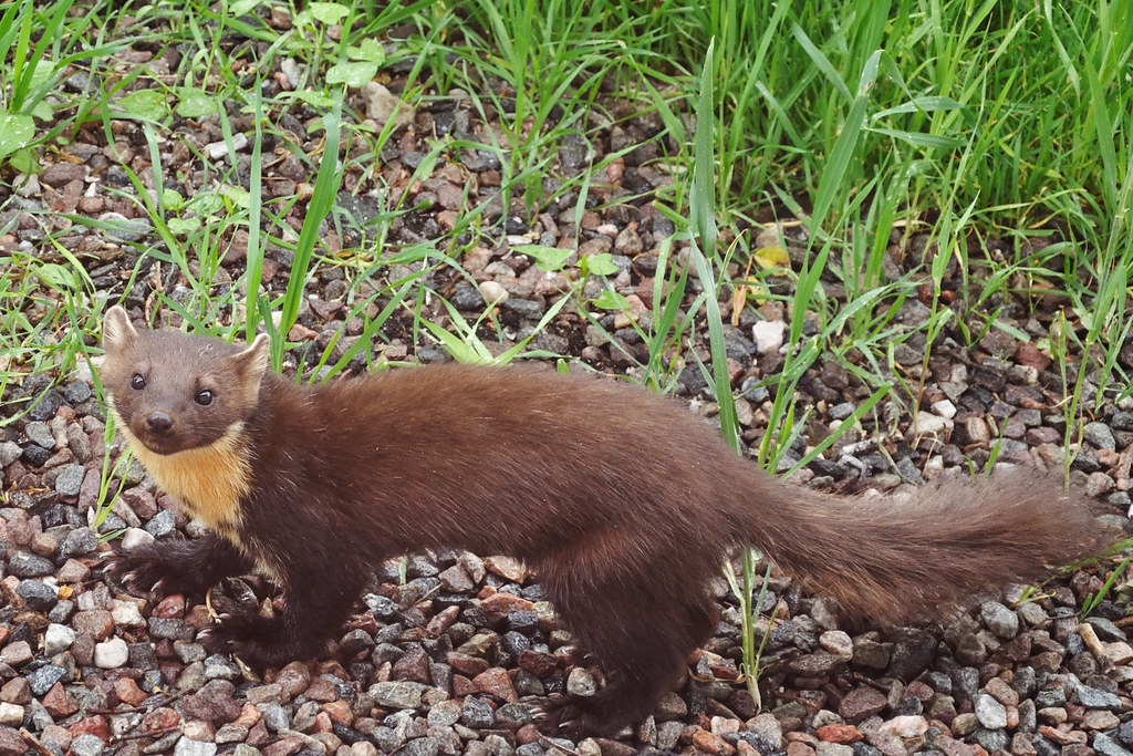 Зверёк забрался на верхушку деревьев и перепрыгнул с одного дерева на другое. Куница ввергла в шок ворону, которая громко каркала и перелетала с ветки на ветку. Скорее всего, птица охраняла своё гнездо от хищника.
