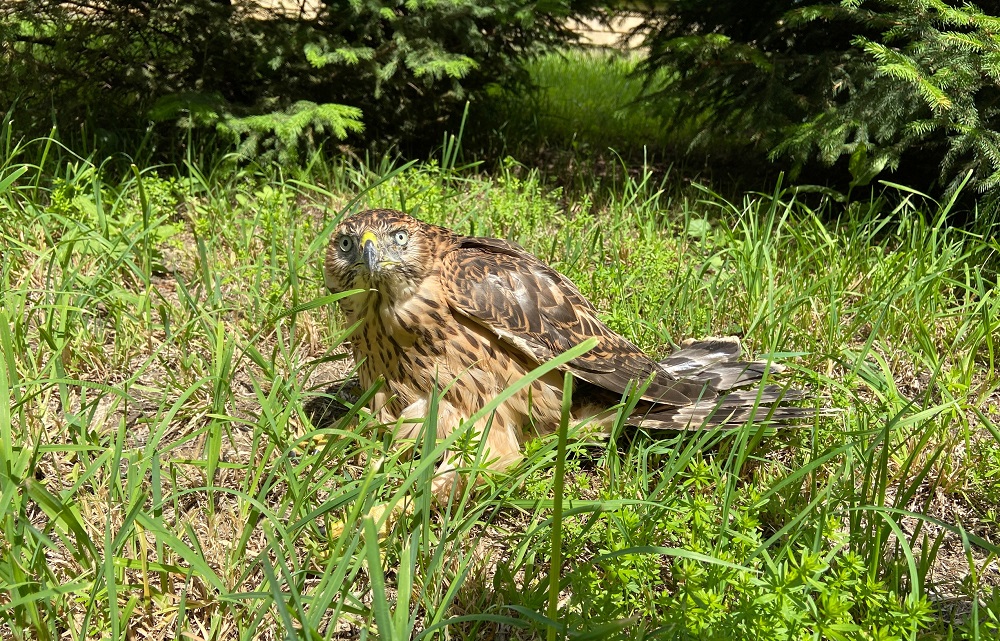 Вчера сотрудники детского лагеря «Факел» зоны отдыха «Дубки» сообщили в Управление Россельхознадзора по Оренбургской области об обнаруженном истощённом соколе.