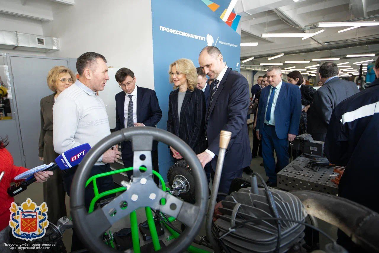 Заместитель председателя правительства России Татьяна Голикова и губернатор Оренбургской области Денис Паслер обсудили возможности профессионального образования на площадке Оренбургского гуманитарно-технического техникума.
