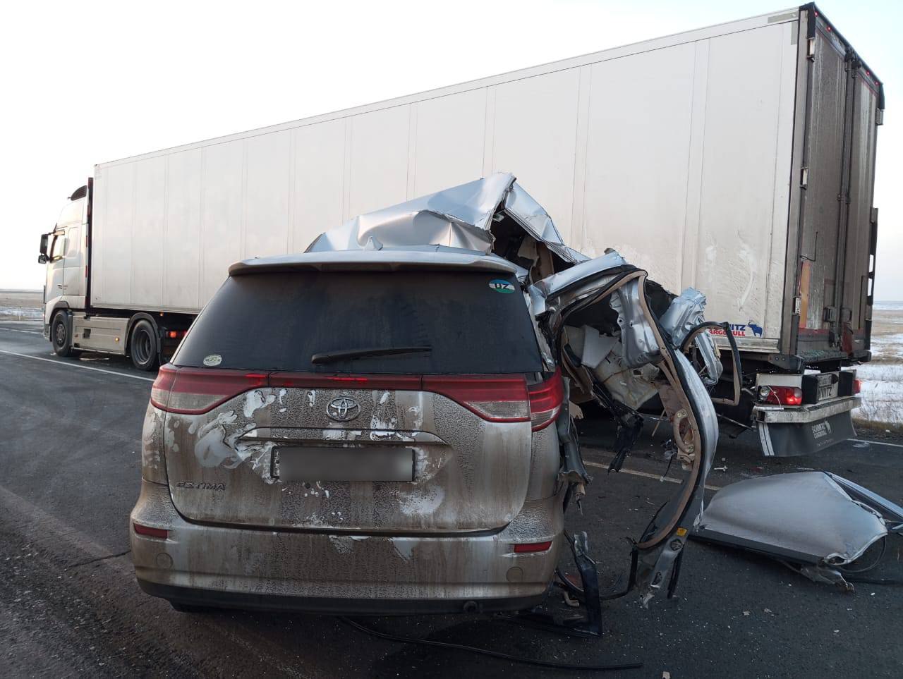 30-летний водитель автомобиля Toyota Estima не справился с управлением и врезался в стоящий большегруз VOLVO под управлением 43-летнего гражданина соседнего государства.