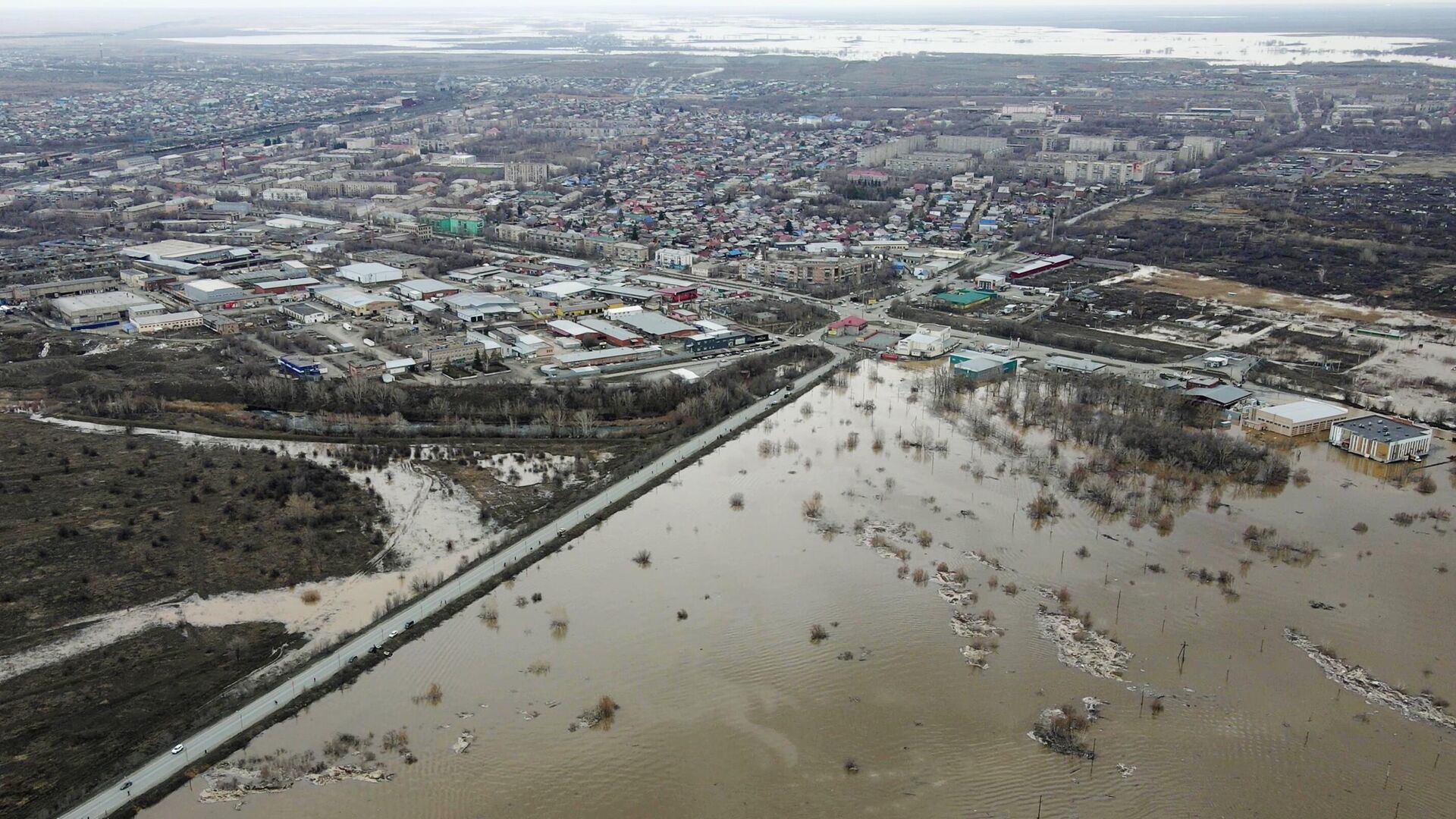Сводный отряд специалистов радиационной, химической и биологической защиты Ясненского соединения при помощи специальной техники АРС-14КМ проводят дезинфекцию пострадавших от паводка микрорайонов.