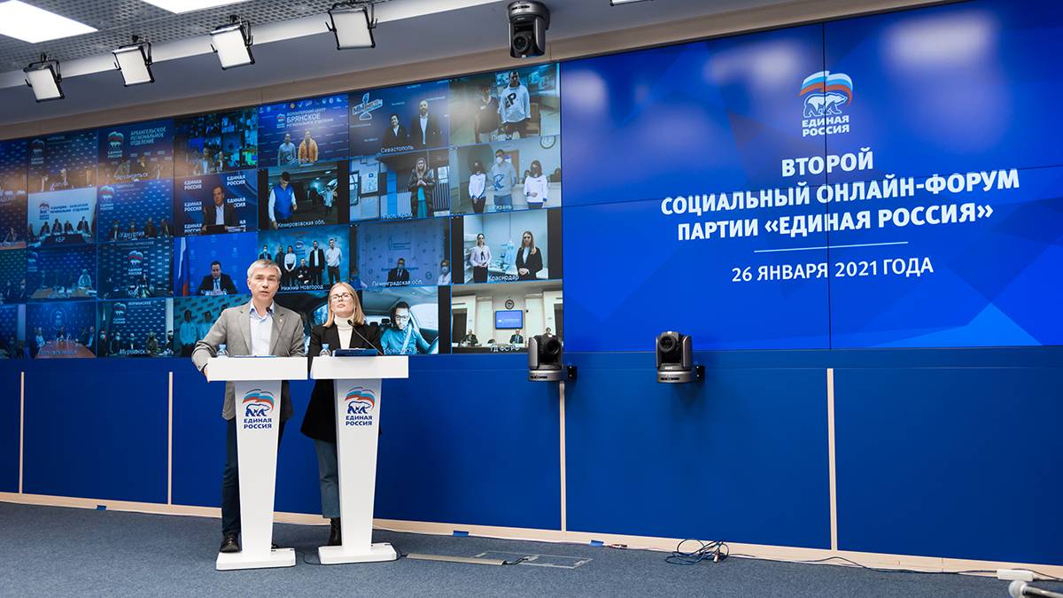 Ряд предложений участников первого Социального онлайн-форума партии, который прошёл 14 декабря, поддержал Президент Владимир Путин. В конце декабря прошлого года глава государства утвердил перечень поручений по итогам онлайн-форума — сейчас партия реализует их совместно с правительством.