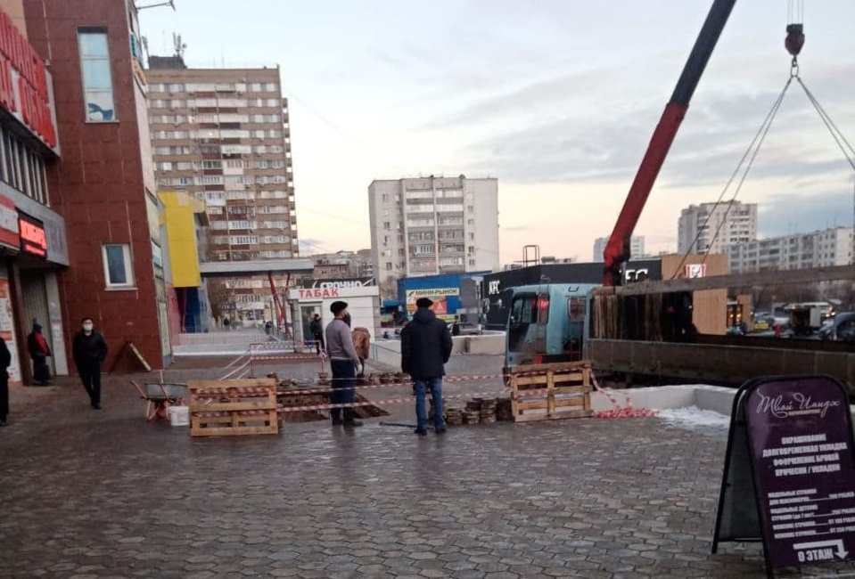 На территории ТЦ «Радуга» в областном центре произошёл провал плиточного покрытия.