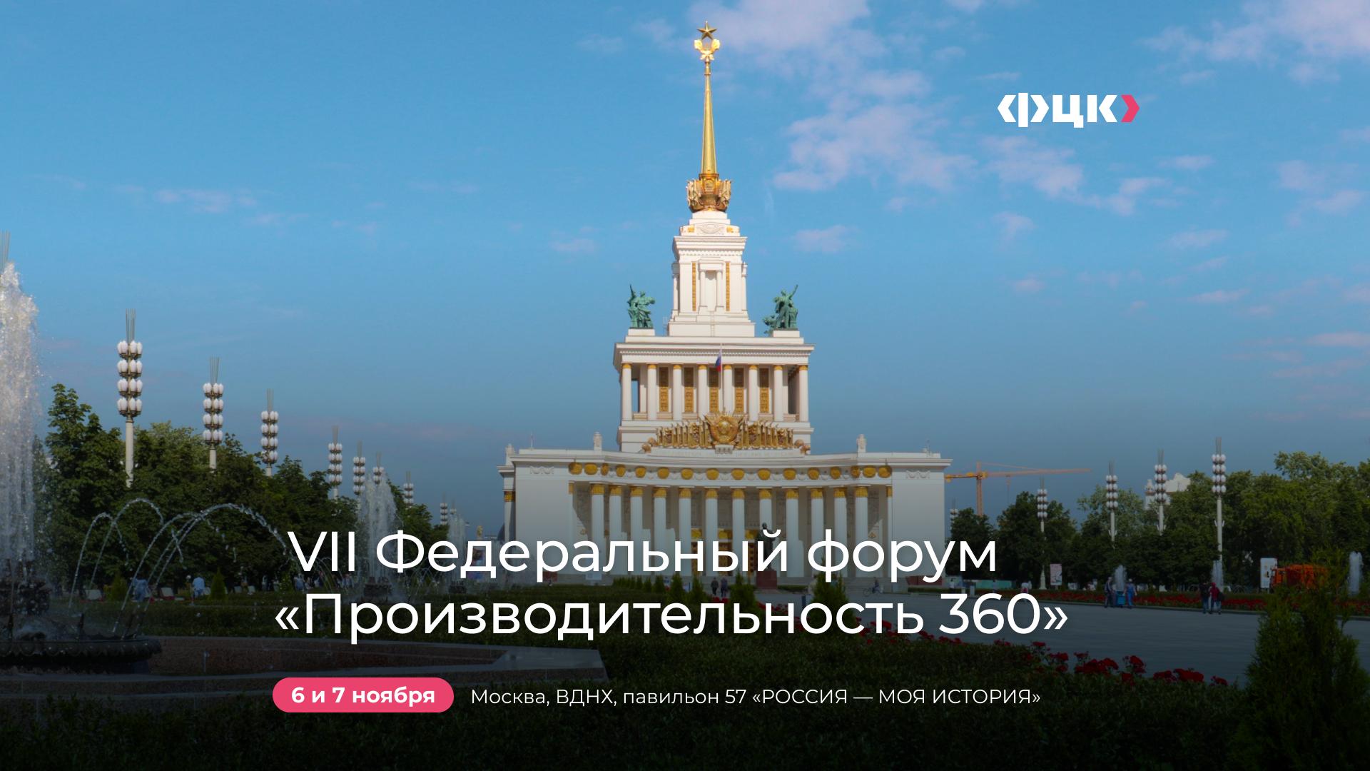 6 и 7 ноября в Москве на ВДНХ (павильон 57 «РОССИЯ — МОЯ ИСТОРИЯ») пройдёт VII федеральный форум «Производительность 360».